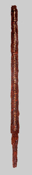 在1968年的发掘考察中,从后圆部发现了两个埋葬设施:棺木周围覆盖着卵石的“砾石椁”和覆盖着黏土的“黏土椁”。砾石椁的保存状态良好,出土大量陪葬品。其中有一把镌刻着115个金字的铁剑,这是该时代非常宝贵的文字资料,目前,仍将其作为说明当时社会情况的重要资料继续进行研究。包括铁剑在内,还有铜镜、勾玉、武器和马具等稻荷山古坟的随葬品,均于1983年被指定为国宝文物。